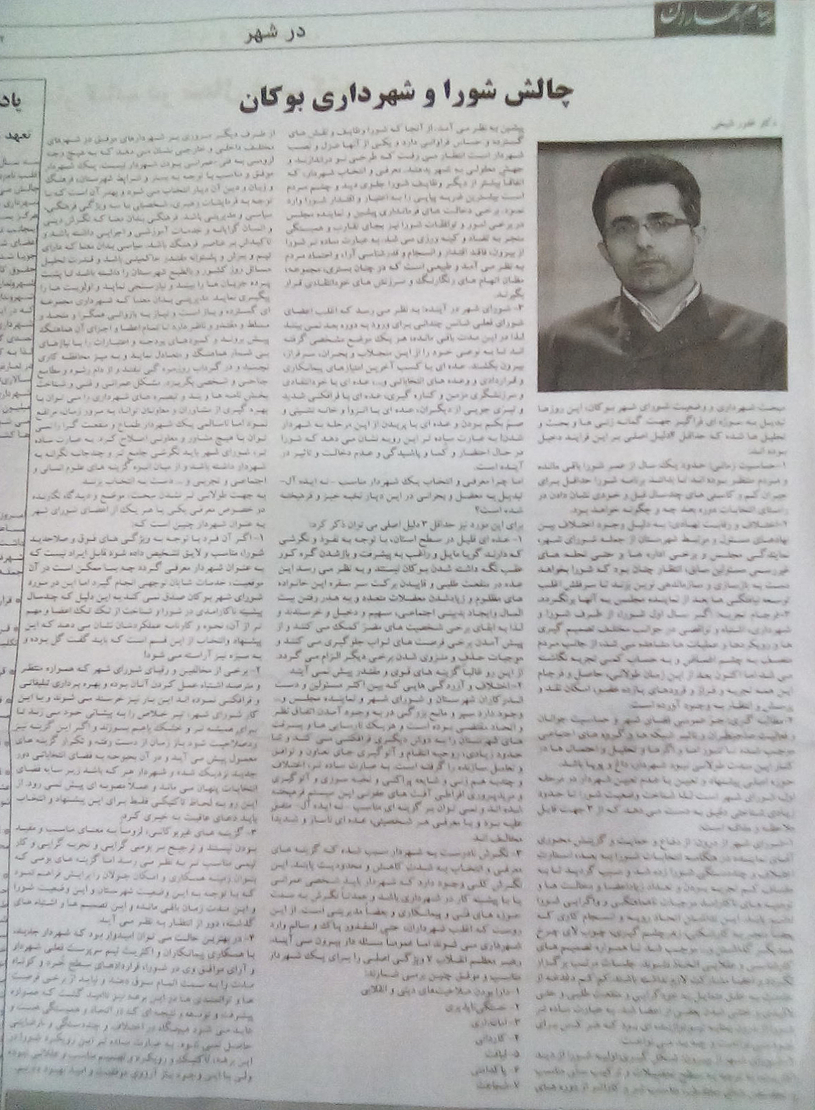 -شیخی، غفور (1395) چالش شورا و شهرداری بوکان، پیام بهاران، سال پنجم، شماره 73، ص5
